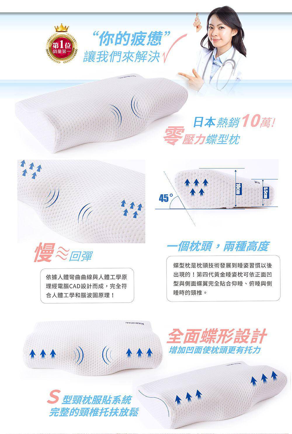 日本蝶形快眠枕 採用抗菌材料 軟Q材質 讓人清熱安神十足好眠